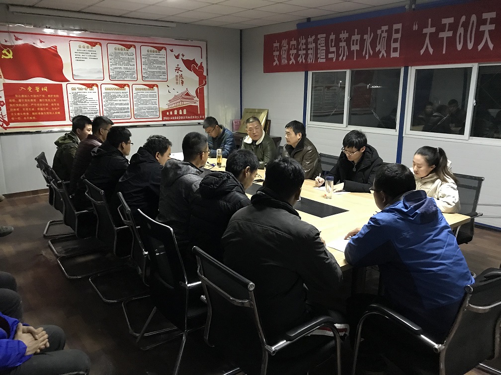 為激發(fā)廣大員工的工作熱情,確保年度各項(xiàng)目標(biāo)任務(wù)順利完成。安徽安裝新疆烏蘇中水回用項(xiàng)目部從2018年11月1日—12月31日開(kāi)展“大干60天”勞動(dòng)競(jìng)賽活動(dòng)。11月6日晚,公司紀(jì)委書(shū)記、工會(huì)主席李寬旭,項(xiàng)目部全體管理人員和10個(gè)施工班組長(zhǎng)共30多人參加了“大干60天”勞動(dòng)競(jìng)賽動(dòng)員會(huì)。